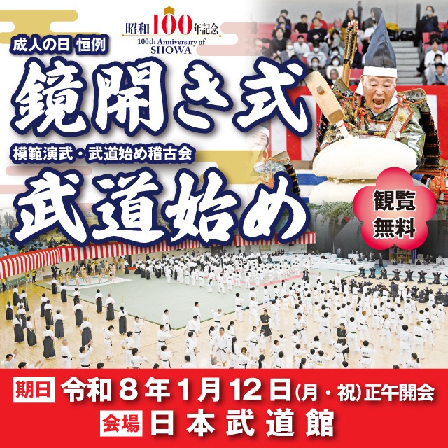 昭和100年記念 令和8年鏡開き式・武道始めについての詳細は、こちらのページにてご覧ください。
